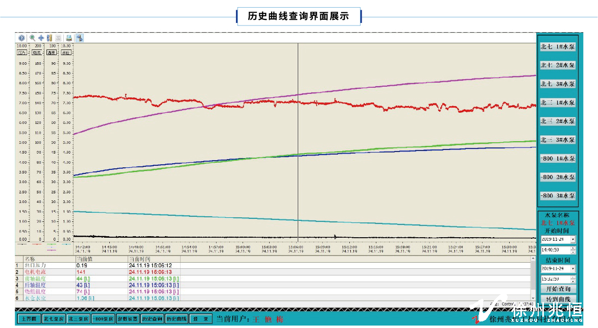 (2)记录和查询电机电流、水仓水位实时数据曲线,便于数据分析。
