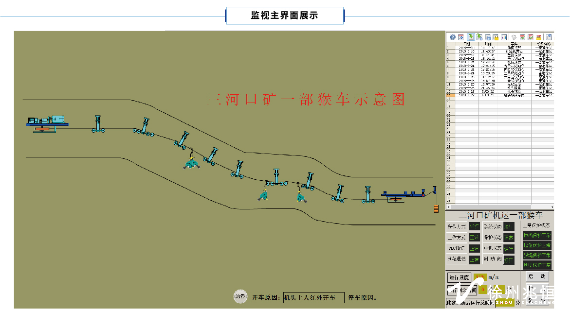 能够通过地面计算机或井下就地箱上的显示屏显示架空乘人装置的运行状态(动态画面);能够显示电动机或整个运行系统的主要参数(包括电机电流、运行速度、运行时间等参数);显示保护传感器动作的位置和故障信息等。
