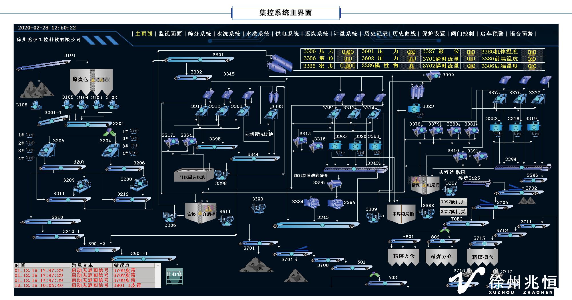5)皮带保护监视:将生产系统中的皮带保护信号接入到集控系统中来,当皮带保护动作时,能及时发现故障点,并进行处理。